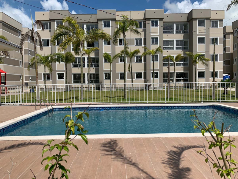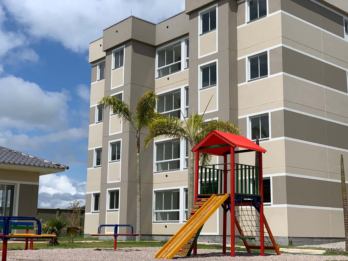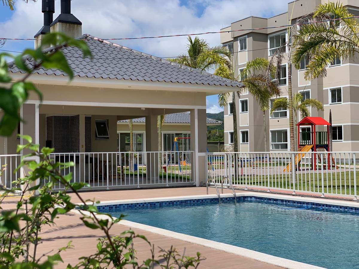 02 quartos, banheiro, sacada integrada e vaga privativa. A área comum conta com: salão de festas mobiliado com churrasqueira e forno de pizza; sala de ginástica mobiliada; playground; brinquedoteca; mini quadra de esporte; piscina com área de quiosque, churrasqueira e banheiro; bicicletário; guarita de vigilância; interfone; portão eletrônico e medição individual de água, gás e luz.